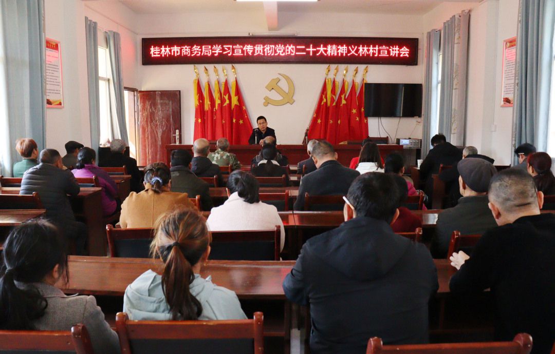 1月13日,桂林市商务局局长徐宁到瓜里乡义林村开展反走私、慰问脱贫户等活动,并在该村委会2楼会议室召开学习宣传贯彻党的二十大精神宣讲会。