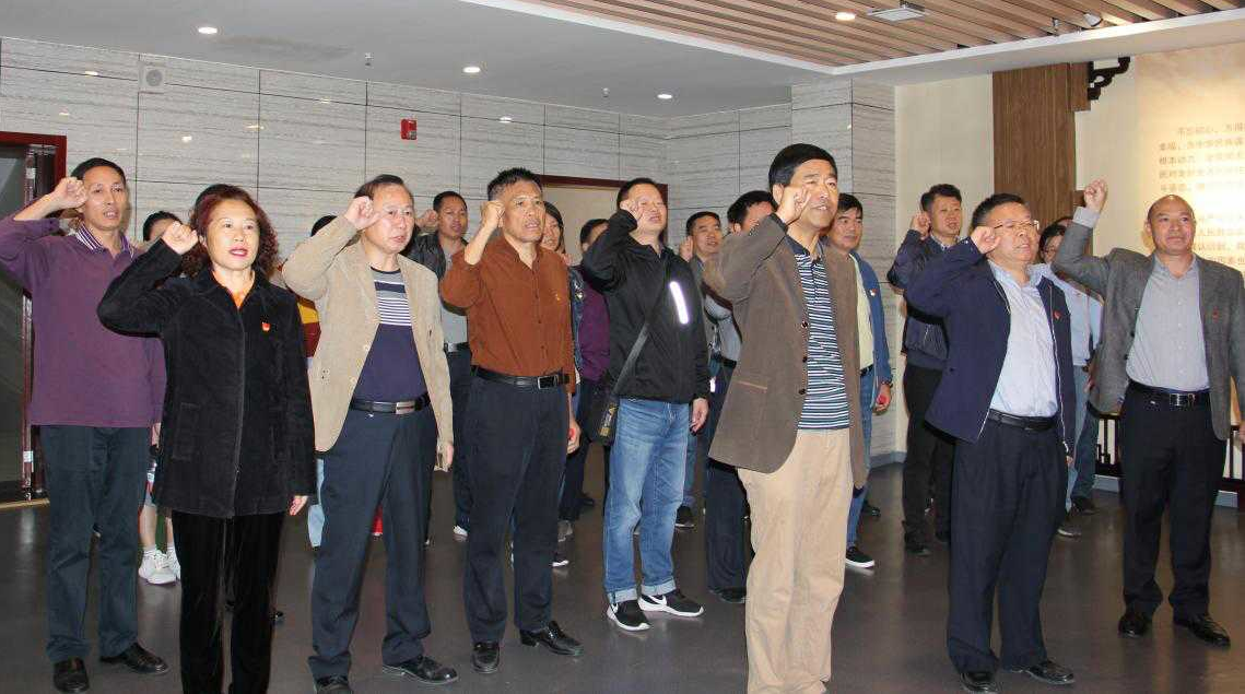 最后,大家肃立在党旗前,举起右手,重温了入党誓词。