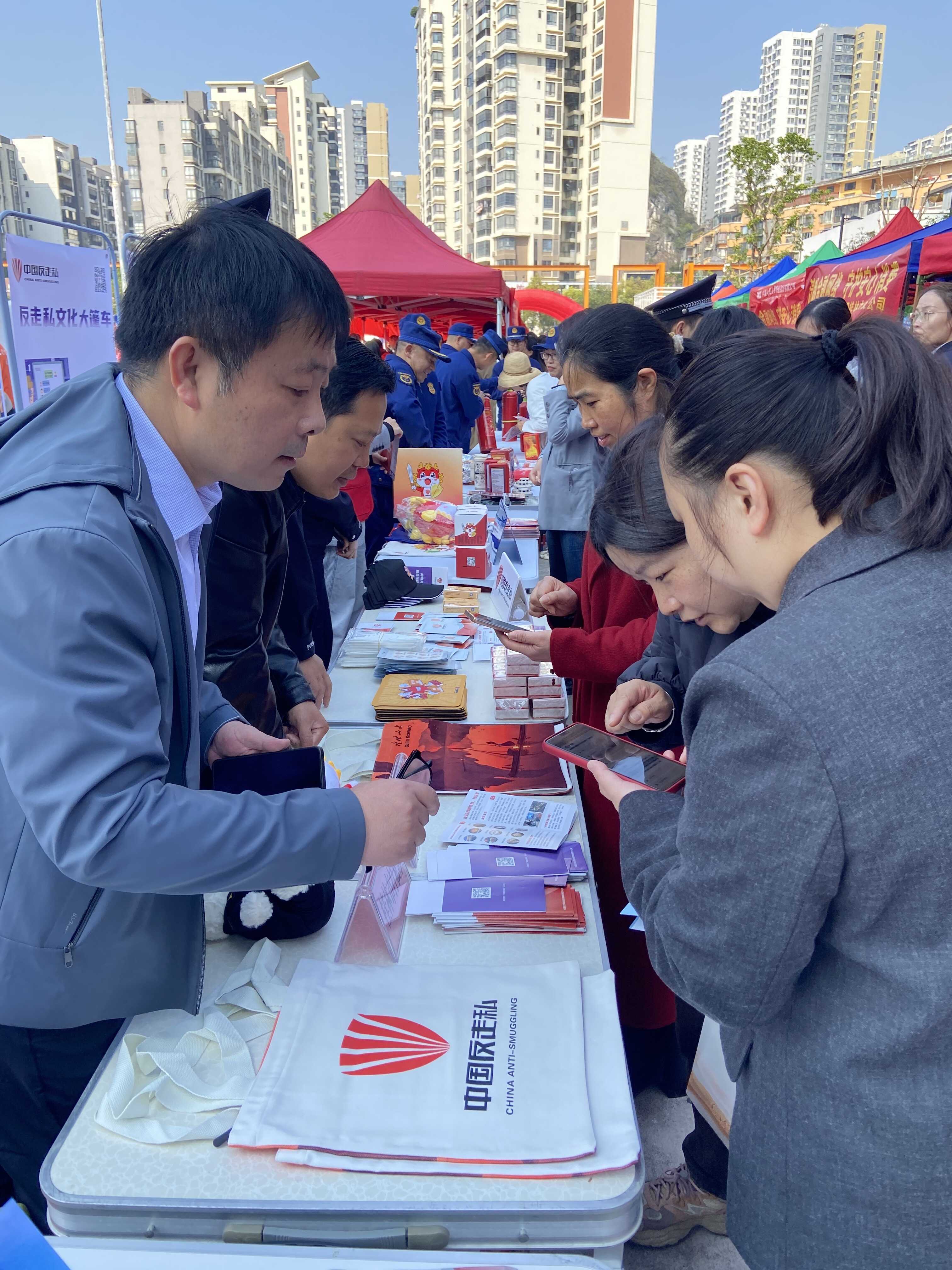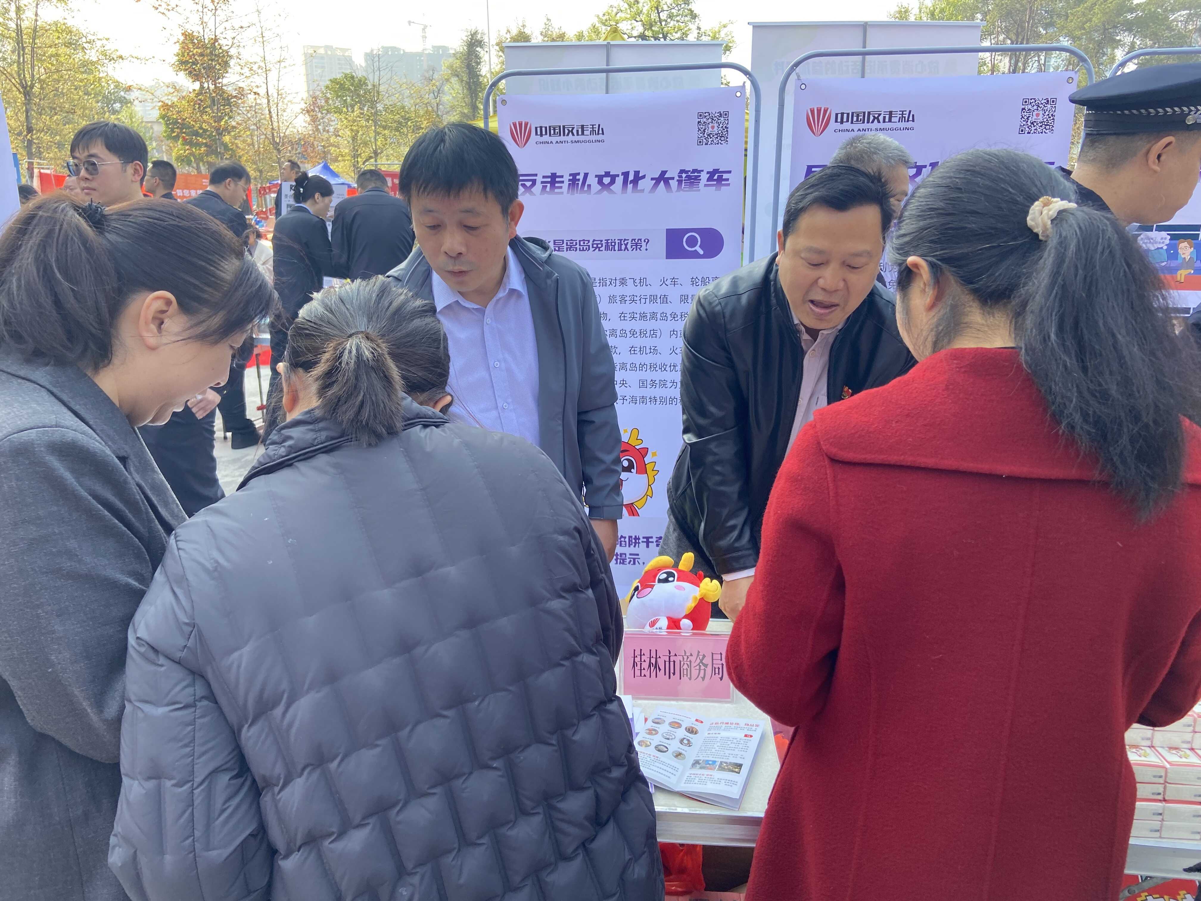 在桂林市商务局党组的统筹引领下,全市商务系统始终坚守服务民生、守护市场安全的初心使命,近期联合多部门精准开展反走私暨消费维权系列宣传活动,切实把党的政治优势、组织优势转化为市场治理效能,以实际行动践行“兴商惠民”的责任担当。
