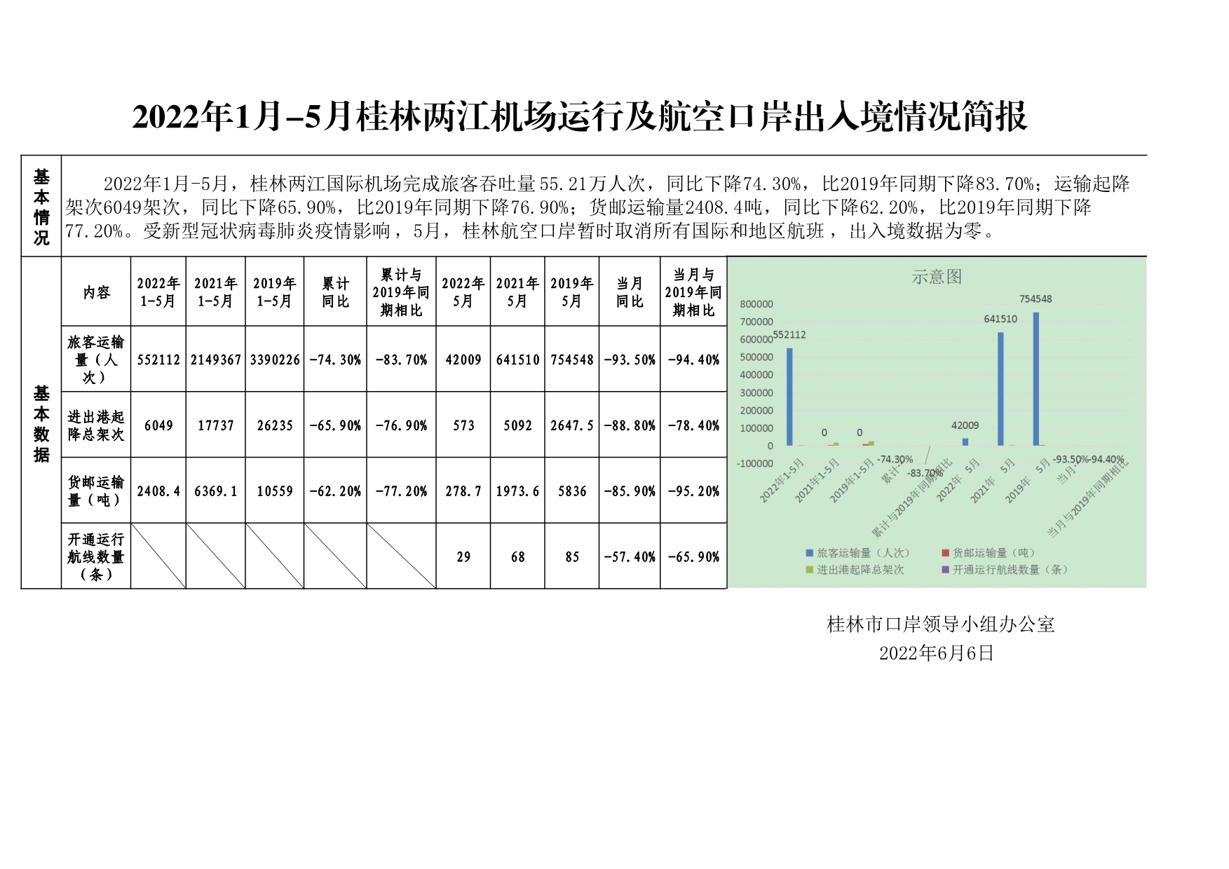 2022年1月-5月桂林两江机场运行及航空口岸出入境情况简报